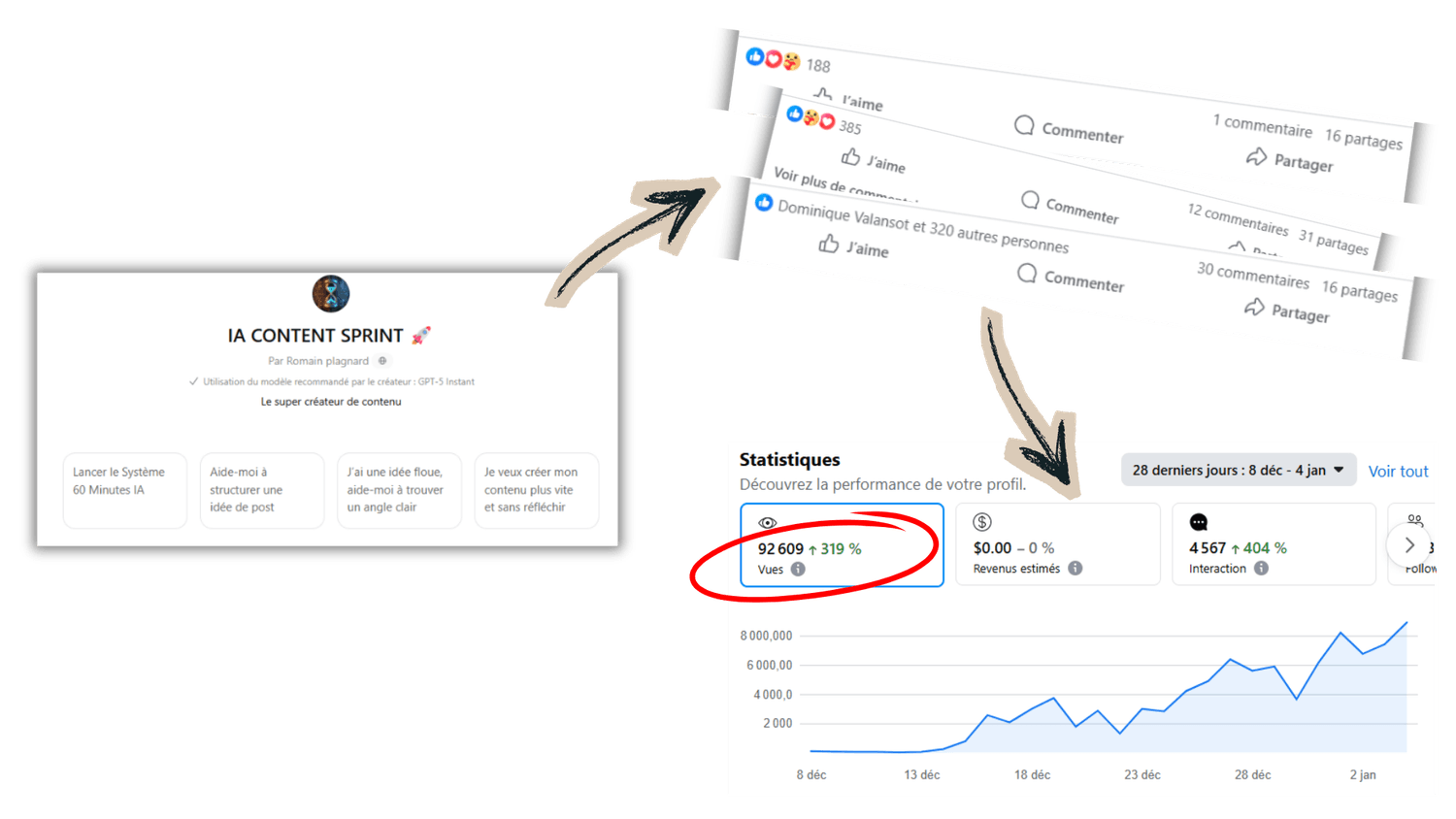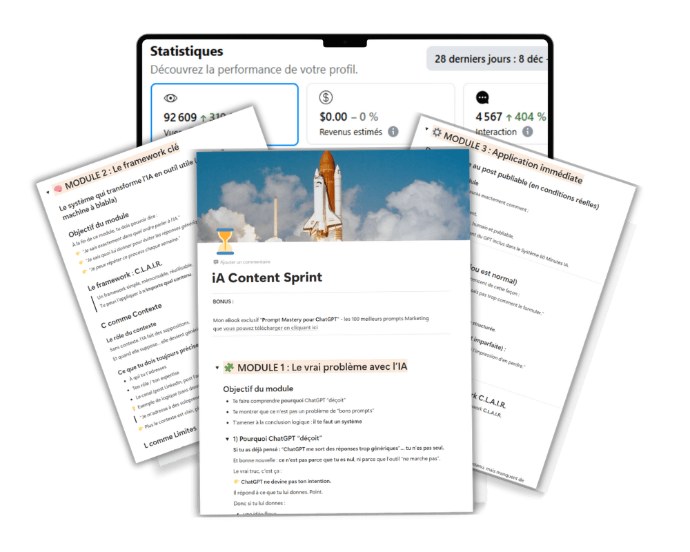 Je te montre exactement comment je construis un contenu de A à Z. Pas de théorie abstraite : tu vois le raisonnement, la structure, les choix… et les résultats que ça peut générer quand le contenu crée de vraies interactions.